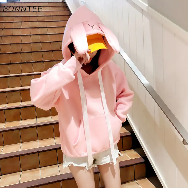Best Hoodies Women Kawaii Fashion Simple Lovely Korean Style Long Sleeve Womens Clothing Soft Hooded Thi